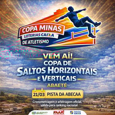 O sucesso da Copa Minas Loterias CAIXA de Saltos 2026 em Abaeté é fruto de um esforço coletivo que coloca o esporte em evidência no cenário estadual. A ABECAA expressa seu profundo agradecimento à Federação Mineira de Atletismo (FMA) pela confiança ao selecionar nossa cidade e nossa pista para sediar uma competição oficial de tamanha relevância.