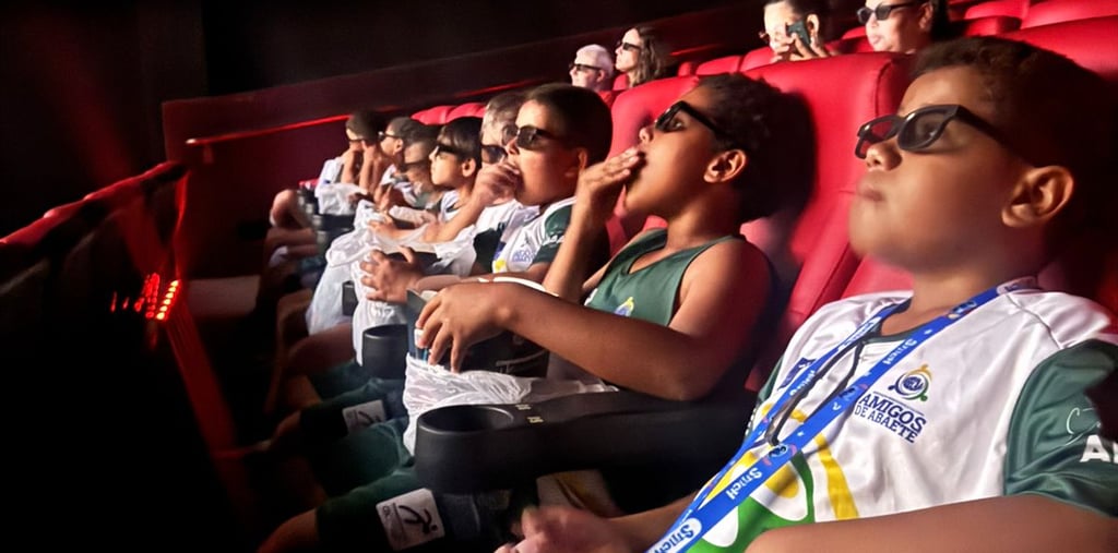 Os alunos do Projeto Viva Handebol e Atletismo 2, de Abaeté, participaram de uma atividade especial em Divinópolis. O grupo visitou o shopping da cidade, assistiu ao filme Zootopia 2 no cinema com óculos especiais e viveu momentos de lazer, descoberta e convivência.